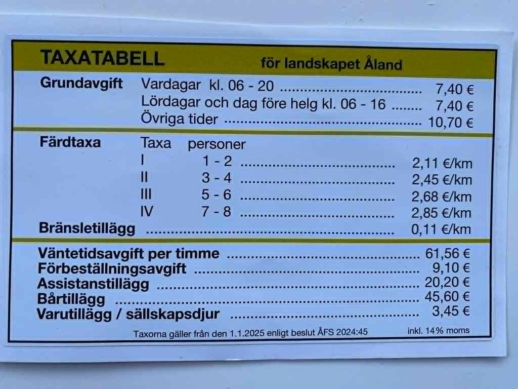 Längst ner kan du även se gällande taxor för taxitrafik på Åland
